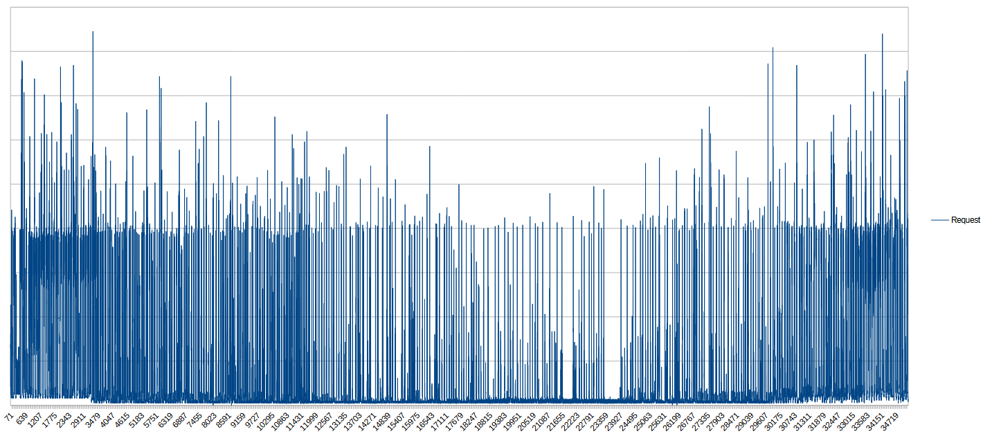 Come possiamo vedere, vi sono più di 34000 misurazioni. Se una misura viene effettuata ogni 15 minuti: 366*24*60/15 = 35136 misurazioni/anno